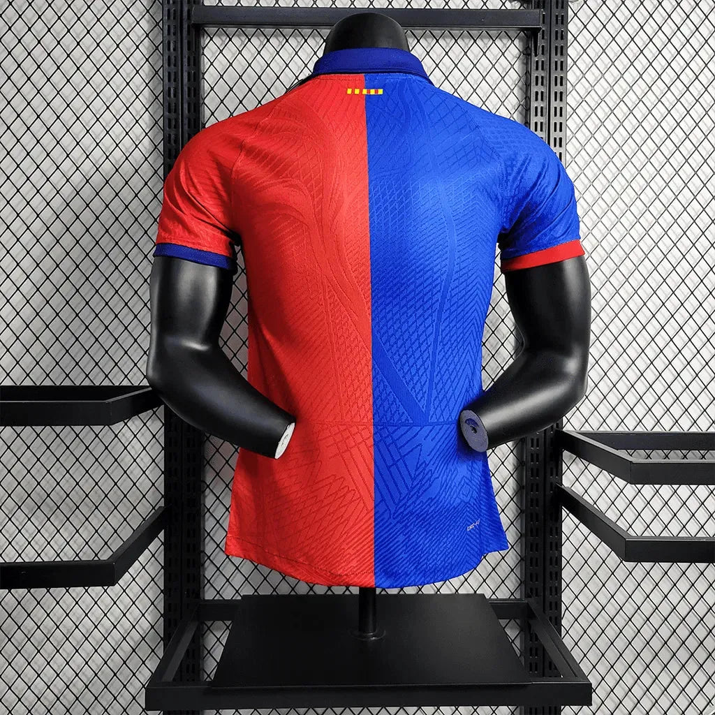 The Barcelona Classic 23/24 Men's Player Shirt - Blue and Red is the official version worn by professional athletes on the field. With a slim fit, ultra-lightweight fabric and strategic ventilation, this shirt was made for high-level performance. Developed with cutting-edge technology, it provides comfort, mobility and advanced technical design.