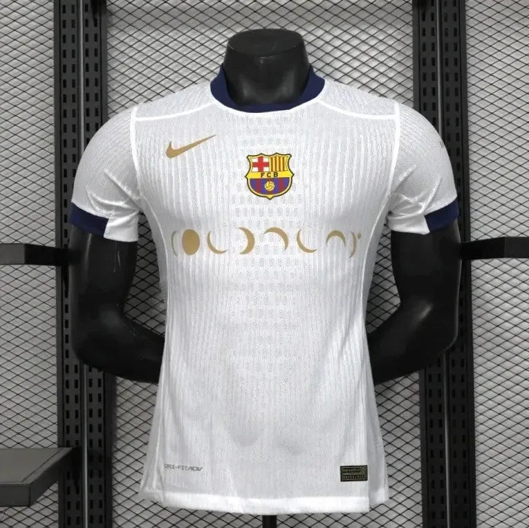 The Barcelona COLDPLAY 25/26 Player Shirt - Men's White is the official version worn by professional athletes on the field. With a tight fit, ultra-lightweight fabric and strategic ventilation, this shirt was made for high-level performance. Developed with cutting-edge technology, it provides comfort, mobility and advanced technical design.