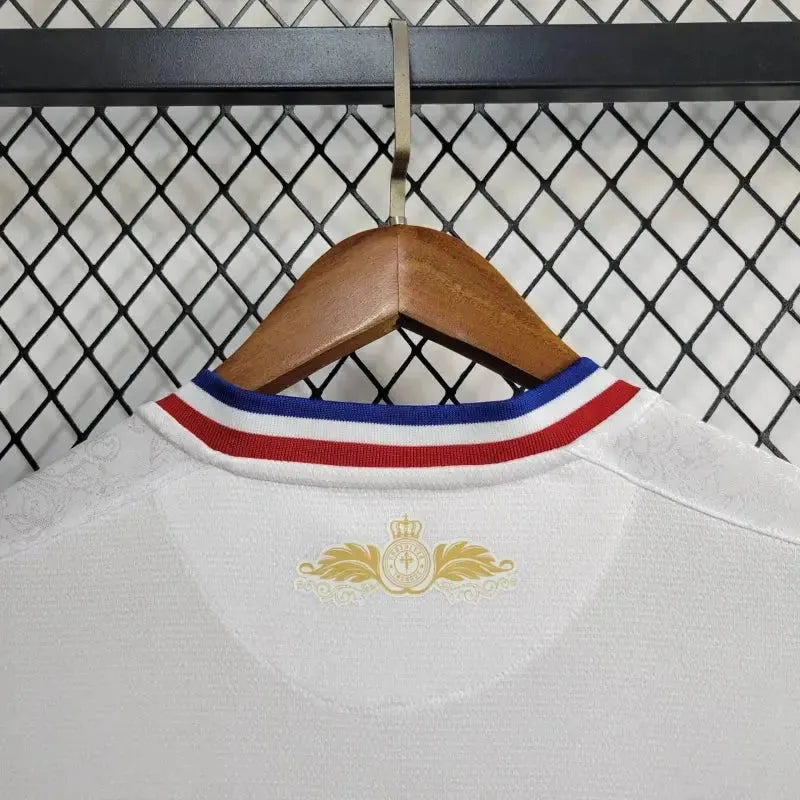 The Fortaleza Away 24/25 Shirt - Men's White Fan Shirt is perfect for those who live their passion for football in their daily lives. Made with lightweight and breathable fabric, it offers comfort throughout use, whether in games, outings or in your routine. With a design faithful to the official model, it is ideal for fans looking for style, identity with the club and quality in the finish. An essential piece for those who collect or wear the jersey with pride.