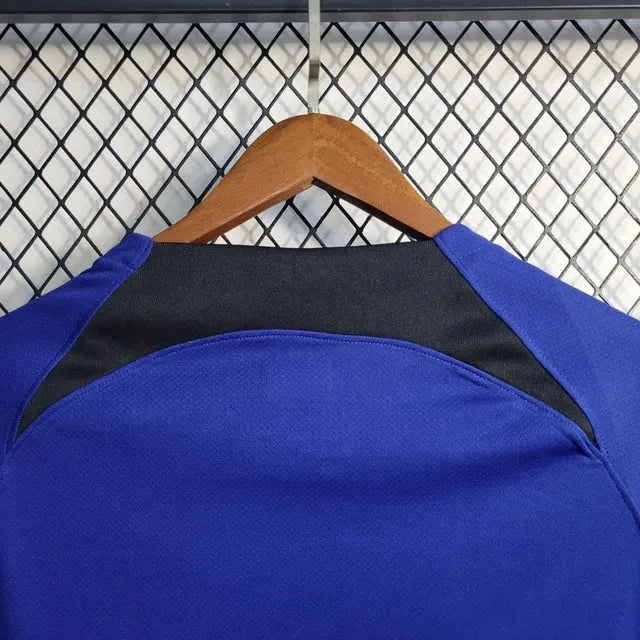 The Holland Away 22/23 Shirt - Men's Blue Fan is perfect for those who live their passion for football in their everyday lives. Made with lightweight and breathable fabric, it offers comfort throughout use, whether in games, outings or in your routine. With a design faithful to the official model, it is ideal for fans looking for style, identity with the club and quality in the finish. An essential piece for those who collect or wear the jersey with pride.