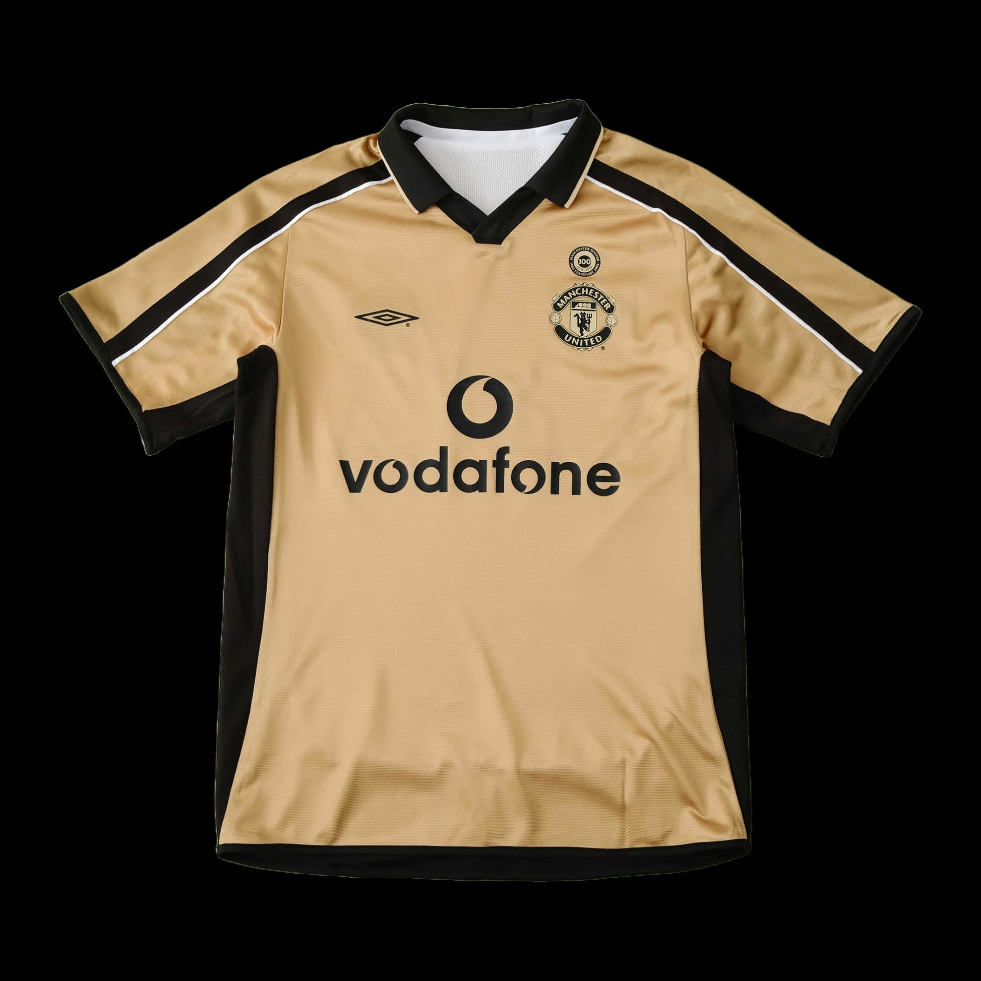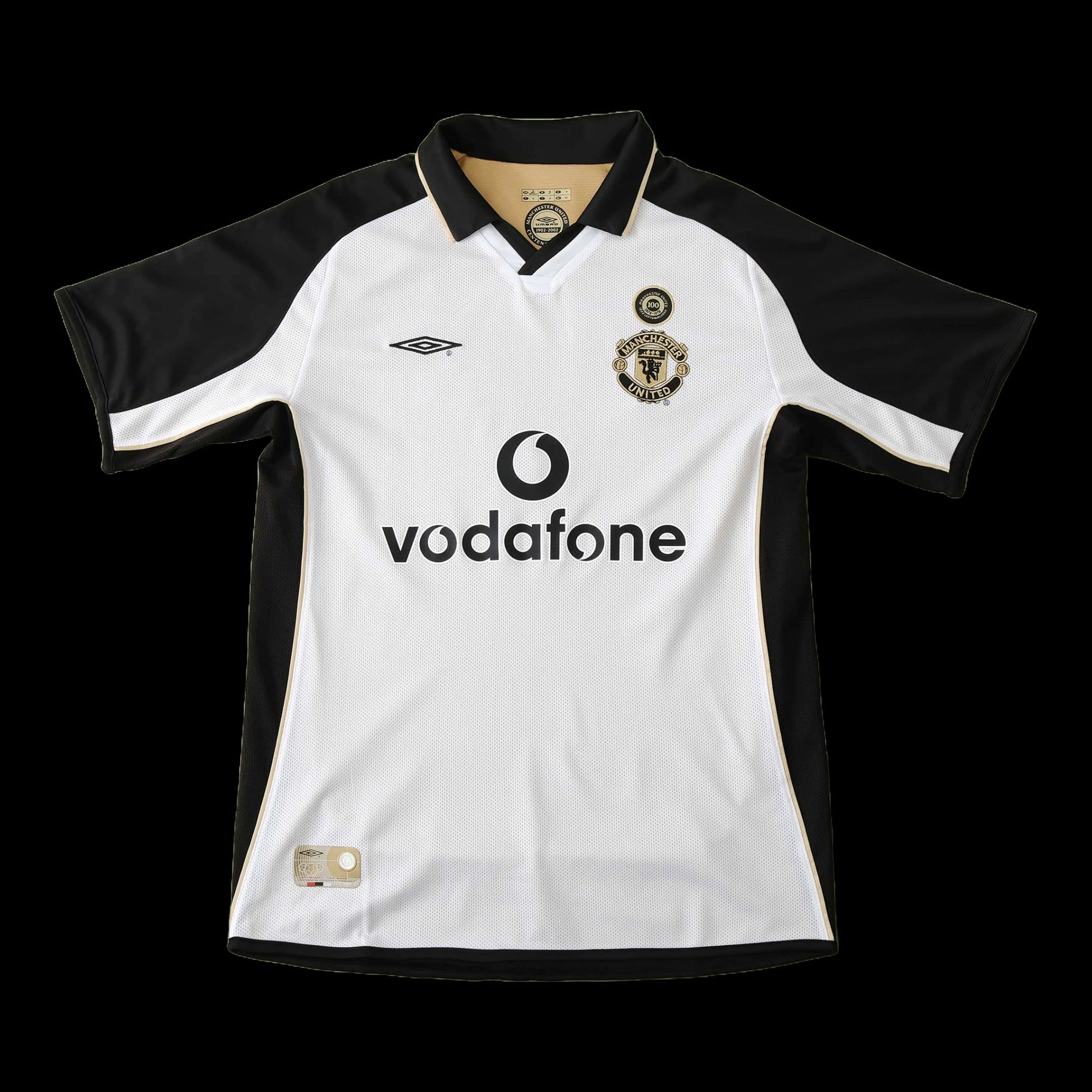 Manchester United Retro 100th Anniversary Edition Shirt 01/02 - Men's Fan Shirt White, Black and Gold - Double Sided