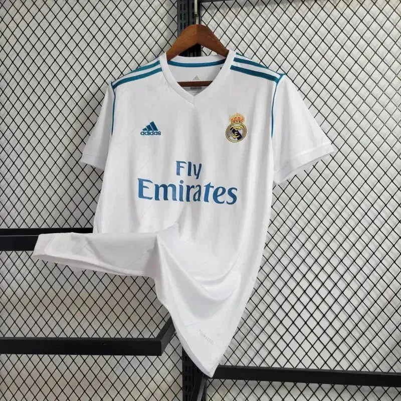 Real Madrid Retro Home Shirt 2017/18 - Men's White and Blue Fan Shirt