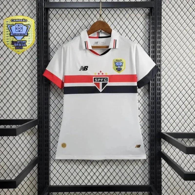 São Paulo Home 24/25 Shirt - Women's New Balance White Fan Shirt + Brazilian Cup Patch